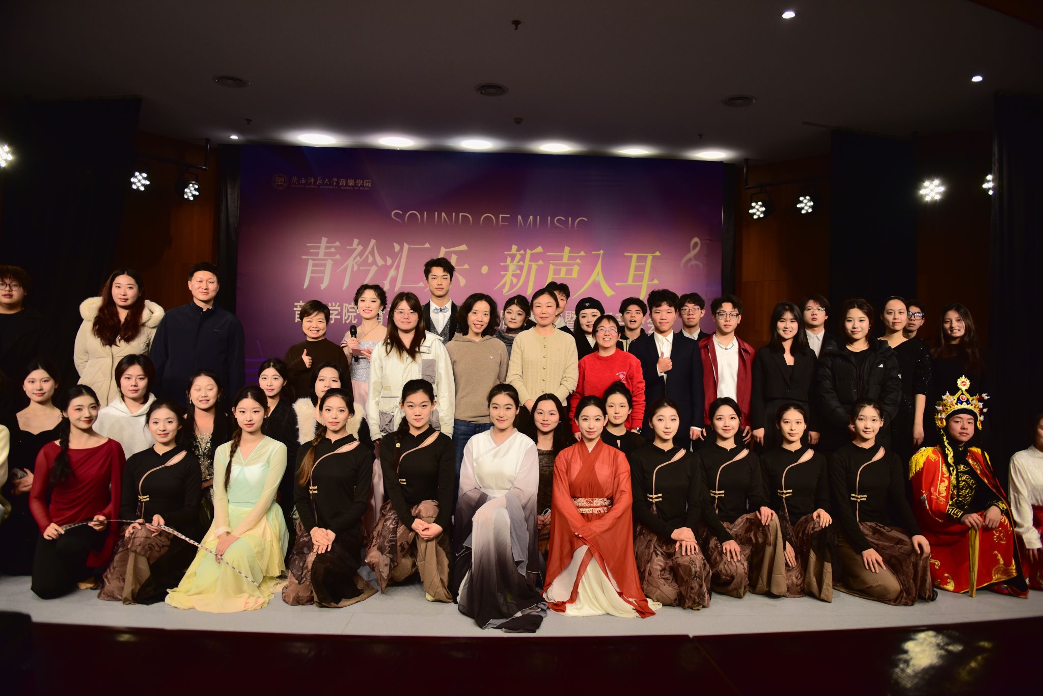 启动仪式结束后,全体与会人员合影留念,并共同观看了由“青衿课堂”师生带来的“青衿汇乐·新声入耳”迎新音乐会。音乐会节目形式多样、内容精彩,涵盖声乐、器乐等多种艺术表现形式,充分展现了学院学生的艺术才华与青春风采,为第五期“青衿课堂”拉开了美好序幕。