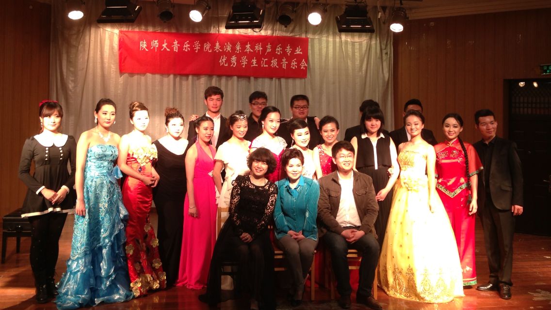 其中2011级范增磊、陈欢、张海蓉、沈娜、2012级赵金梦等同学尤为突出。范增磊对音乐感觉的把握和对作品角色的理解恰如其分,能快速的融入作品角色当中,舞台表现力极为丰富;陈欢同学的演绎和对舞台的驾驭能力日趋成熟,对作品情感的表达和声音技巧的应用游刃有余;张海蓉同学的表演轻松自如,自由大方,不再是那个紧张怯场的小姑娘,完整的表达了作品的内涵,选歌方面与其气质非常相符,让人眼前一亮;沈娜同学对音乐风格的把握愈到位,完全传达了《圣母颂》所表达的虔诚,舞台气质在逐渐提升;赵金梦同学的演唱仿佛让我们走进了真正的大陕北,大气豪爽,很有潜力。