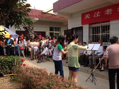 为了提高我院学生的社会实践能力和社会公德意识,为老人献上一份关爱,2014年6月2日,我院团委学生会成员及2013级音乐文化学班全体同学走进杜曲镇夕阳红老年公寓,进行敬老院慰问和献爱心活动,本次活动也是我院“舞动青春,唱出梦想”文艺走基层系列活动的一部分。