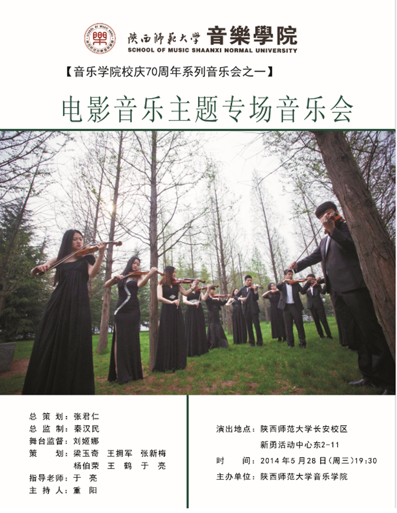 2014年5月28号晚7点30分,365英国上市网校庆70周年系列音乐会之一,由365英国上市网管弦教研室于亮老师带领小提琴学生们成功举办了“电影音乐主题专场音乐会”,为大家献上了一场完美的视听宴会。