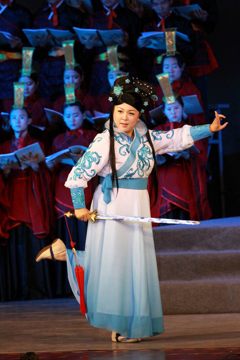 6月9日晚,终南音乐厅座无虚席,观众情绪盎然、兴致勃勃观看了由我院师生公演的中国民族歌剧《木兰诗篇》。该剧是一部本土原创、展示英雄主义精神、集中国妇女美德于一身的优秀作品,由著名作曲家关峡作曲,剧作家刘麟编剧,中国空军政治文工团国家一级演员冷永铭导演编导,由我院雷倩(饰花木兰)、李亚云(饰刘爽)、张伶(饰花母)、任红星(饰花父)四位青年教师担任主演,历时半年编排,通过独唱、重唱、合唱、表演、舞美、服装等形式展示给观众的首部完整版的民族经典歌剧。