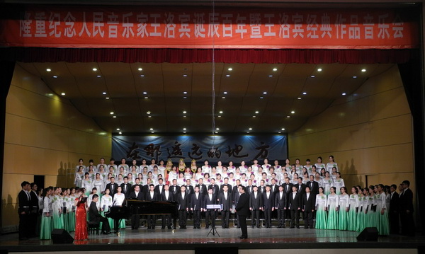 其中,我院合唱团演唱的《青春舞曲》在指挥王拥军副教授的带领下与现场听众进行了很好的互动,为音乐会推波助澜;最后一首经典大合唱《在那遥远的地方》由参与演出的所有合唱团员共同完成,琴声的绵延悠扬与歌声的扣人心弦融为一体,深切的感受着王洛宾先生创作的音乐作品带给我们的感动,现场听众热烈持久的掌声给予整场演出的高度肯定,也预示着“隆重纪念人民音乐家王洛宾诞辰百年暨王洛宾经典作品音乐会”完美落下帷幕。