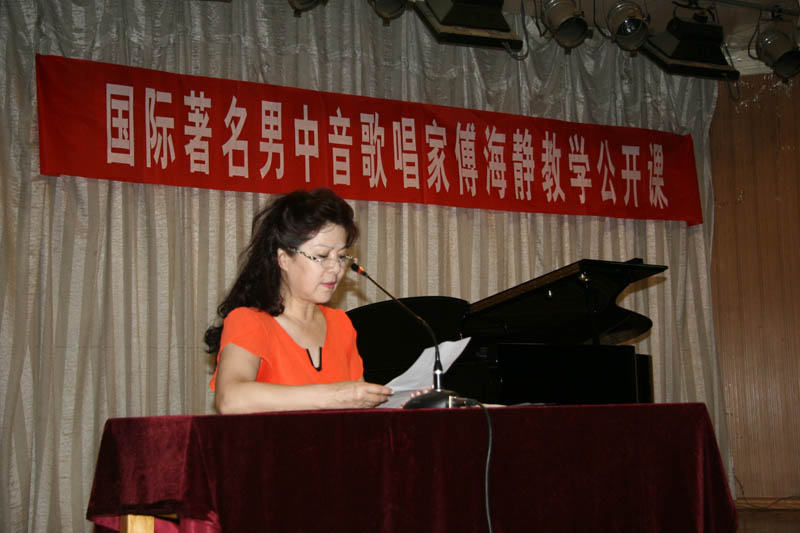 傅海静教授的教学公开课于6月6日在六艺楼报告厅举行,院长田大成教授出席了此次讲座并致欢迎词,田院长在欢迎词中指出,我院在歌剧排演方面取得过一些成就,但我院为进一步加强发展歌剧教育事业,却仍需继续学习,并不断汲取新鲜养分。此次能够邀请到傅海静教授来我院举行教学公开课,是我院师生提升自己综合素质水平的一个良好契机。之后,傅海静教授在雷动的掌声中上台发言,他首先对我院近年来在歌剧教学方面所取得成果表示了肯定以及衷心的祝贺,他表示,在歌剧的教学演唱方面,在我国还有很大的可提升空间,现如今,很多高等院校都在进行歌剧排演,可是能真正做到出色的却并不多,这说明,在这条道路上,我们仍需继续加强。