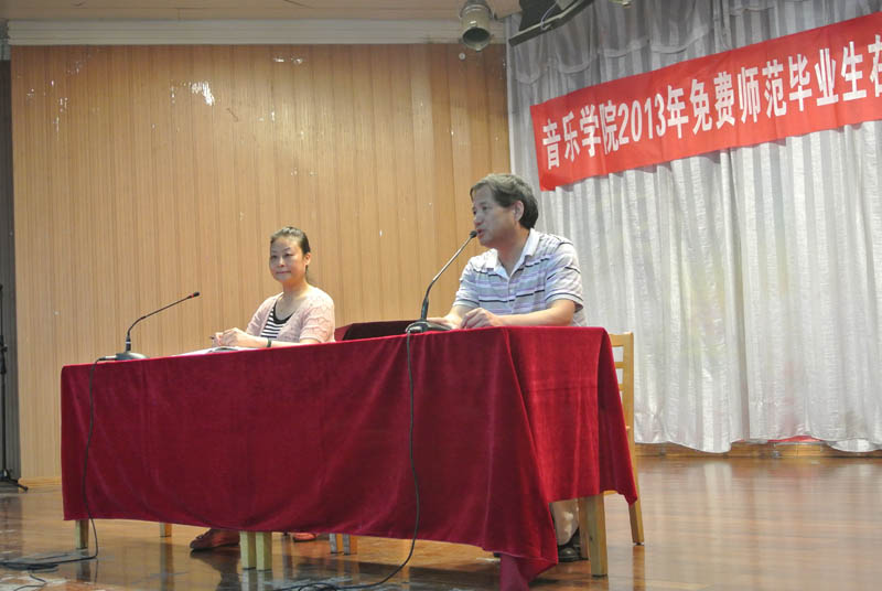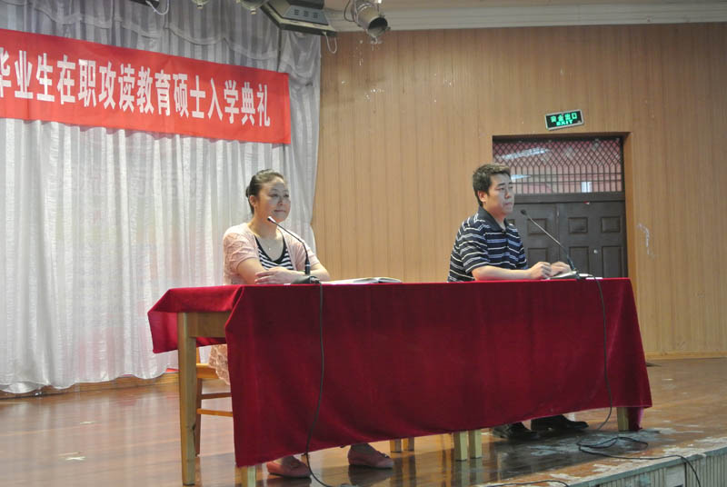 7月19日,在学院报告厅隆重举行2013年免费师范毕业生在职攻读教育硕士入学典礼,学院党总支书记秦汉民,副院长程鹏民、王拥军、张向侠、梁玉奇,教育硕士学科主任赵露,教学秘书程铂,办公室主任、教育硕士研究生辅导员李亚云,任课教师代表王林、王宏亮以及2013级免费师范生在职攻读教育硕士的全体研究生参加了会议。会议由学院副院长张向侠主持。