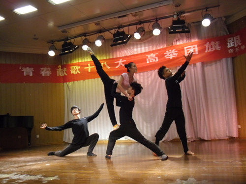 文艺汇演以学生会文艺部六名同学带来的舞蹈《小看戏》拉开了帷幕。之后,主持人以一段精彩的开场白向大家介绍了此次到场的嘉宾,在观众的掌声中,魏丹宁为大家演唱了《我爱你,中国》,王晨、张倩雨等七名同学又为大家带来了一个诗朗诵《永随党心》,突显了此次文艺汇演的主题。搞笑新颖的三句半、独舞《男傣》、B-box《红旗飘飘》、小品《白雪公主》等精彩的节目接连不断,歌伴舞《那么爱你》更是把场内的气氛带入了又一个高潮,同学们的精彩表演,使观众们不时地为他们呐喊,鼓掌。最后,文艺汇演在全体演职人员带来的合唱《中国中国,鲜红的太阳永不落》中圆满落幕。