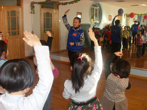 给孩子们讲授简单的舞蹈知识
