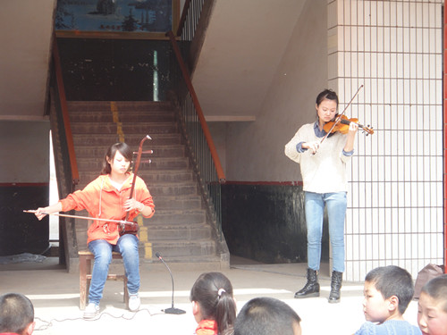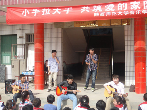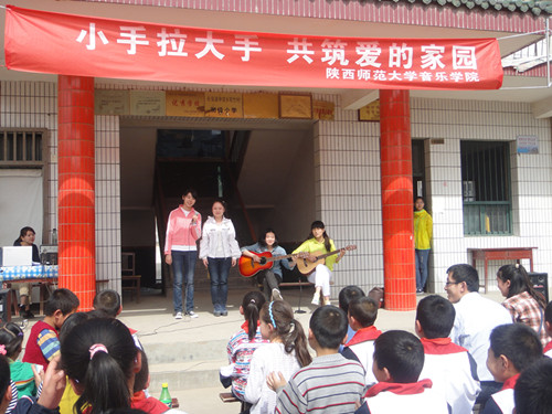 为深入贯彻党的十八大精神和团省委《关于开展“青春雷锋耀三秦”——学雷锋主题志愿服务月活动的通知》及校团委《关于开展学雷锋志愿服务活动的安排意见》精神,3月19日,我院团委组织2012级音乐学2班、音乐表演班和音乐文化学班的同学们前往长安县双竹希望小学献爱心、送温暖,并发挥专业优势,为当地的师生表演了一场精彩的演出。