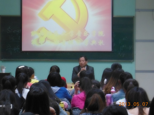 在同学们的热烈掌声中,党委宣传部部长孔祥利教授开始了报告,他的报告主要分为三个部分,即党的性质、党的纲领和党的指导思想,孔教授结合多年的工作经验和学习感受,深入浅出的未同学们做了详细的阐述。报告最后,孔教授向同学们提出了一定要认真学习,积极宣传党的理论、方针、政策,在同学之间要发挥表率作用,争取早日成为一名真正的共产党员。