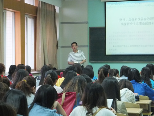 这次讲座的主题是《坚持和改善党的领导、确保社会主义事业的完全胜利》。刘建军首先提出了中国共产党核心领导地位的确立是在中国近代历史发展的必然结果,明确强调了核心的关键作用和力量,始终围绕毛泽东思想展开讨论,用真实的历史事件记录了我们党风风雨雨的艰苦历程。接着他又把党的理论与当今大学生的实际生活相结合,他希望同学们练好自己的专业,努力追随党的脚步,先为小家做贡献,再为社会主义伟大的建设增添一份力量。最后,他强烈的呼吁现在青年大学生们珍惜眼下幸福生活,全面提高自我修养,努力学习,坚持发展具有中国特色的社会主义伟大事业。