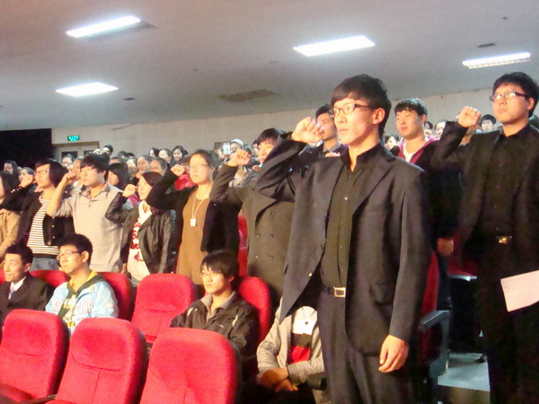 大会在第八届团委、学生会全体成员庄严宣誓中落下帷幕。