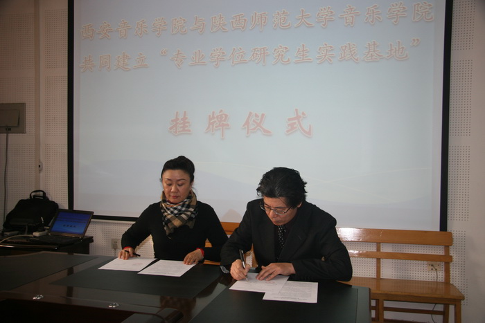 为了提高专业学位艺术硕士的专业能力,在西安365英国上市网与我院相互间的积极协商下,两院共建“专业学位研究生实践基地”签约挂牌仪式于11月21日早在我院举行。