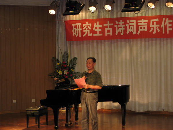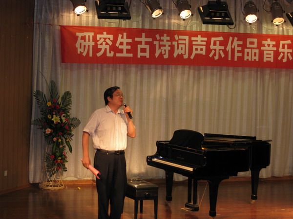 音乐会在典雅的《关雎》歌声中拉开了序幕。《关雎》讲述的是男女之间朦胧美好的爱情故事,一句“窈窕淑女,君子好逑”将千年前美好的爱情故事展示给了我们。使听众追随着歌声感悟着其中的无法用语言表述的细腻情绪。我校前副校长吕九如教授在优美的歌声中无法抑制自己激动的心情,为大家现场吟诵了《阳关三叠》,吕九如教授激情澎湃的吟诵感染了在座的观众,并给师生们作了深层次的解读。他讲到:三叠用不同的情绪进行吟诵,低沉忧伤,把伤感离别之情表现得淋漓尽致。引得现场掌声阵阵。音乐会现场教务处处长党怀兴教授也上台为大家倾情朗诵了李煜的《虞美人》,声音和情感的表达十分到位,无穷哀怨,让人不由发思古之幽情。诵毕,党怀兴教授兴致高涨,又吟唱了李后主的《虞美人》,他独特的嗓音条件及魅力十足的韵味,迎来一阵阵喝彩声,富有磁性的歌声征服了听众。