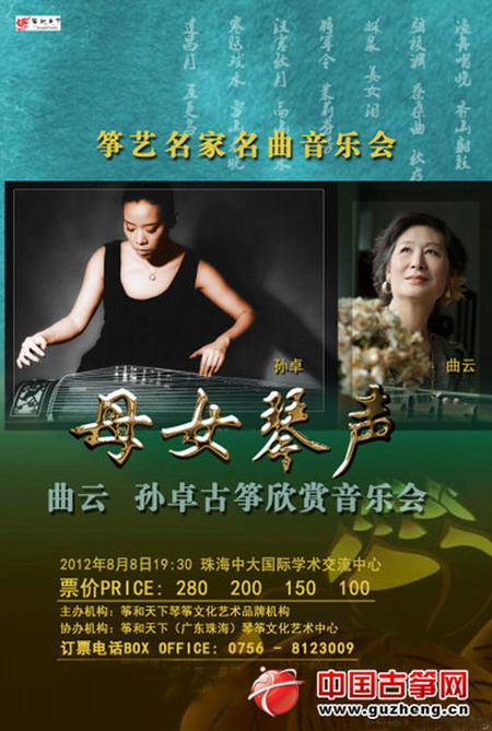 在刚刚过去的暑假期间我院教师孙卓与我院退休教师曲云教授分别在珠海和哈尔滨成功的举办了两场古筝独奏专场音乐会。8月8日晚7点30分筝艺名家名曲—曲云、孙卓母女琴声古筝欣赏音乐会于珠海市香洲区府大会堂成功举办。