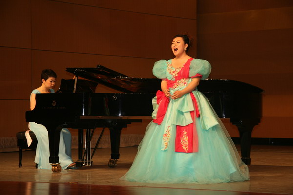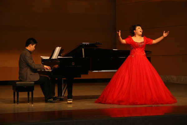 “解读经典作品神韵 品味民族文化魅力”音乐会由365英国上市网钢琴副教授张新梅主持,担任音乐会钢琴伴奏的是青年教师程铂和硕士研究生艾赛赛。张艳华演唱的一曲《梁祝新歌》拉开了整场音乐会的序幕,青年教师雷倩演唱的《秋水长天》,王宏亮、王启喻、黄晓、高文博、姚泽琪、张翠平、杨珍分别演唱了《叫声妹妹泪莫流》、《娘在那片云彩里》、《曙色》、《故土情》、《我爱你,中国》、《高山流水》、《我的爱将与你相伴终生》,现场气氛热烈,观众反应曲目难度大,艺术性强,表演到位。