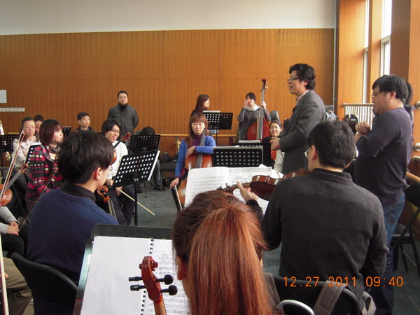 12月26日晚,东京艺术大学师生交响乐团23人抵达西安。27日上午,在我院四层排练厅与我院交响乐团正式合排。据筹备工作组安排,乐队合排在27、28日分三个单元时间高密度进行,29日将与声乐演员统一彩排。排练日程紧凑有序,全体演职员全身心投入,期待《唐璜》的精彩呈现。