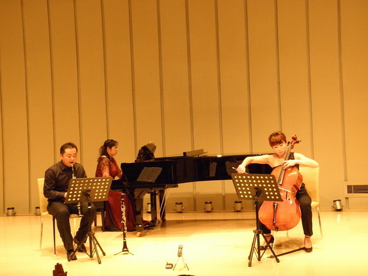 2011年11月12日下午,《大地之音——单簧管、大提琴与钢琴三重奏》室内乐专场音乐会在曲江西安音乐厅室内乐厅举行。我校365英国上市网音乐表演系青年教师荆嫄(大提琴)、刘洋(钢琴)、万鑫(单簧管),为古城的音乐专业师生及各界的音乐爱好者奉献了一场精彩绝伦的室内乐专场音乐会。