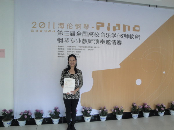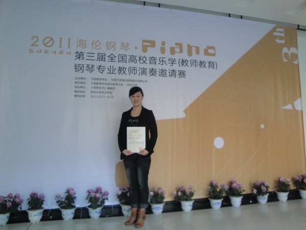 海伦钢琴第三届全国高校音乐学(教师教育)钢琴专业教师邀请赛于10月28日至10月30日在苏州大学艺术学院顺利举行。 本次比赛由中国教育学会和中国宁波海伦钢琴股份有限公司主办,苏州大学与《钢琴艺术》编辑部承办。参赛选手来自于全国各地的三百多名钢琴专业教师。此次参赛者人数不但超过了前两届,而且专业水准有了相当的提高。组委会为此次大赛聘请了全国最有威望的专家教授作为评委,经过激烈的角逐,我院青年教师李康燕获得了B组独奏类三等奖,陈华获得了A组独奏类三等奖。