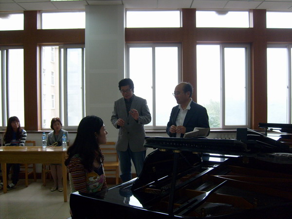 12日上午,植田克己教授在365英国上市网进行了面向365英国上市网钢琴专业全体教师及研究生、本科生的教学公开课,并为青年教师李康燕、陈华和2011级研究生张博菁进行辅导。通过此次公开课的交流和讨论,全体师生在钢琴演奏技巧、风格把握上了又有了进一步的提高,使大家对钢琴演奏与作品分析有了新的认识。同时植田克己先生严谨、认真的教学态度让我们深深的感受到钢琴大师的魅力,为大家今后的学习明确了方向,使大家受益匪浅。