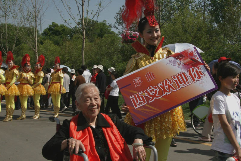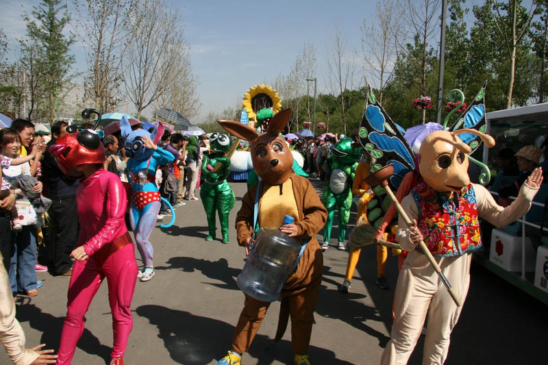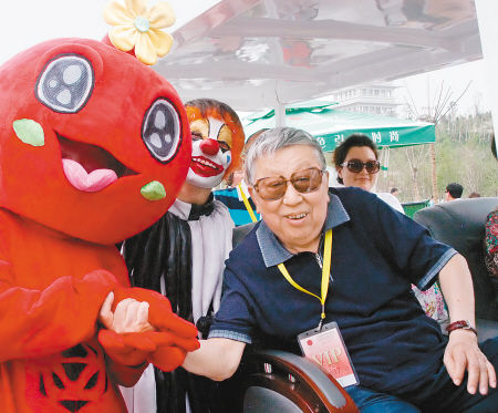 自4月28日世园会开园以来,花车巡游的学生演员们每天都在为游客带来精彩演出,近三个月的辛苦排练终于迎来了世界各地宾朋的“检阅”。每当走进花车巡游活动,都会听见欢快的音乐和观众的笑声。一瓶水、一条毛巾还有一群为梦想而舞蹈的学生将一起度过178天。烈日炎炎,酷暑难耐,但学生演员从没有一人缺席,也没有一人抱怨。要是问去过世园会的游客什么活动最精彩,他们一定会说是每天两次的花车巡游。从风格各异的花车到演员扮演的可爱蔬果、动物角色,都给游人们留下了深刻印象,可爱可敬的学生演员也得到了广大游客的一致赞赏。5月19日,被誉为文艺界“词坛泰斗”、“国宝级艺术家”的空政文工团剧作家、词作家阎肃进入世园会,阎老饶有兴致地观看了花车巡游,节日般的欢快氛围让阎老笑得很开心,不住地说“过瘾”。已81岁高龄的阎肃一时兴起,竟从电瓶车上站了起来,“很好,很有创意,一下子就让人记住了”。老顽童般的阎老还和装扮成长安花的卡通人偶开心合影,并再次赞叹世园会考虑周到,既有东方的意境之美又有西方的形式之妙。
