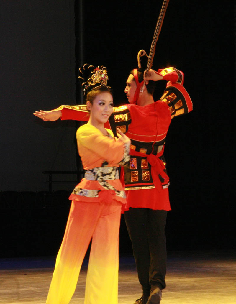 当晚,五位毕业研究生和舞蹈系全体研究生共表演了群舞、独舞、双人舞、三人舞等十支舞蹈。有具有朝鲜族旋律律动的《闲鹤》、代表蒙古族风格的《额尔古纳河的女儿》、也有奔放的西班牙双人舞蹈和柔美多姿的三人舞《水竹谣》。我院两位声乐研究生邓茹、王宏亮友情演唱的《玛依拉变奏曲》《西部放歌》将人们带到了祖国的西部,领略了祖国西部的一片繁荣、和谐的景象。整场晚会紧凑有序、在一片热烈、祥和的气氛中进行。