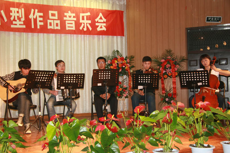 整场音乐会包括声乐作品6首,器乐独奏作品3首,器乐合奏作品11首。这些作品风格各异:有描写中国少数民族地方特点的声乐作品,有充满欧洲乡村民谣风情的器乐重奏作品等。这些作品形式多样:有钢琴独奏,单簧管独奏;民族乐器与电子乐的结合;大提琴、小提琴与吉他;大提琴、小提琴、单簧管、手风琴与吉他的重奏。这些合奏将古典与现代,民乐与西洋乐完美的结合在一起,给人耳目一新的感觉。本次音乐会,特邀我院青年教师张伶与荆嫄友情出演。张伶演唱的声乐作品《乌兰哈达》将观众们带入了美丽的内蒙古大草原;而荆嫄低沉,婉转的大提琴演奏为器乐重奏作品增添了色彩。音乐会中,师生同台,呈献给大家一场精彩纷呈的视听盛宴,一首气势磅礴的梆笛、古筝与电子乐的合奏曲《紫禁城》将整场音乐会推向高潮并在观众的阵阵掌声中圆满落幕。整场音乐会全方位,多角度的呈现了欧阳文思在作品创作及表演形式上的创新和突破,也从专业方面给学生提供了表演的机会,更充分展现了欧阳文思在专业上所获得的优秀成果。此次音乐会受到了师生的广泛好评,期待欧阳文思能够创作出更多,更好的作品,在工作和教学中广泛应用,再创佳绩。