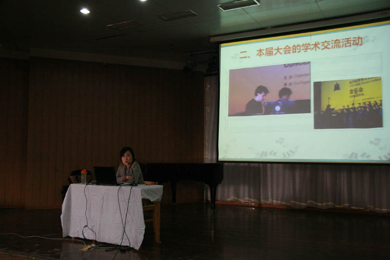 11月26日下午2:30分,我院青年教师牛珺的专题报告会《亲历第二十九届世界音乐教育大会》在六艺楼报告厅举行。我院副院长张向侠出席了报告会。牛珺老师就世界音乐教育大会的历史背景,会议形式、音乐教育发展趋势,及本次大会的学术交流方式一一做了介绍。内容涉及:来自不同国家的特色音乐会、音乐教学实践性强的工作坊及代表前沿学术思想的专题演讲。其中穿插会议照片及视频资料使整场报告会有声有色、丰富多彩,立体的向同学们展示了国内外音乐教育热点问题及国外音乐课独特的授课方式,凸显了东西方文化艺术交流的和谐、共鸣,加深了同学们对本届大会的主题“和谐与世界发展的未来”的理解,扩大了同学们的音乐视野。牛珺老师自工作以来一直潜心研究音乐教育理论及钢琴教学,不断更新教育理念,此次报告会内容完整、逻辑严密、观点独特,获得师生一致好评。