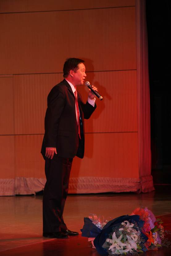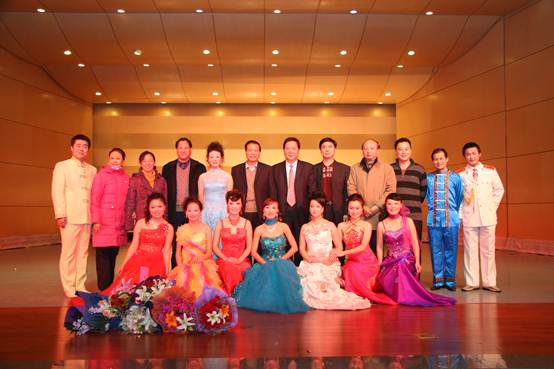 音乐会上,张智斌教授的十位硕士研究生纷纷登台献歌:2009级研究生王宏亮的《西部情歌》、2007级研究生何天生的《乌苏里船歌》、支教保研生张艳华的《西部扬帆》声情并茂,博得观众阵阵掌声。最后,著名歌唱家张智斌教授倾情演唱的《咱老百姓》《母亲》将音乐会推向高潮,音乐厅内掌声雷动、礼花漫天,热烈气氛似乎要将室外的冰雪融化。