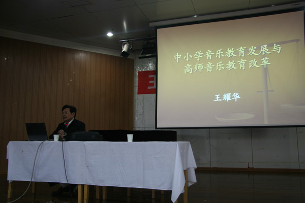 王耀华教授以中小学音乐教学内容的发展来看中小学音乐课程标准的目标、理念为切入点,阐述了高师音乐教育专业的教学改革相关内容,提出了中小学音乐教育发展对音乐教师的要求和必备的能力,并在此基础上论述了高师音乐教育专业的培养目标。同时,讲述了高师音乐教育专业的教学改革的相关内容。王教授指出课程结构体系强调必修课程学科化,选修课程个性化,学校、地方课程特色化,深度剖析了《全国高校音乐学(教师教育)本科专业课程指导方案》的特点以及课程教学指导纲要,并结合中小学音乐教育的发展与高师音乐教育专业的实际状况,以具体、鲜活的实际案例科学严谨地做了讲解和论述。王耀华教授还特别强调高校音乐教育专业是为基础教育培养合格的音乐教师而不是培养专业的演奏家和歌唱家,帮助师生们进一步明确了教学与学习的目标。
