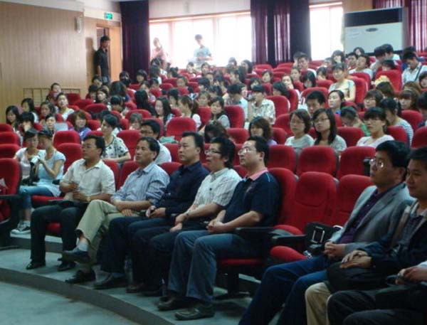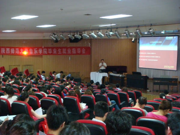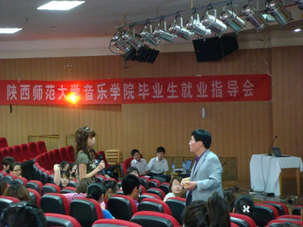 西安科园电子技术有限公司总经理、高级培训师陈伟年先生凭借自己多年的教学及从商经验,与同学们进行了富有成效的互动交流,博得在场同学的阵阵喝彩。陈经理用“土豆和吸管”的测试告诉大家做人应该有信念、有追求,而且要懂得权衡执着和变通。模拟应聘环节,环环紧扣,步步推进,每一次提问都触动着在场每一位同学的神经。现场互动过程中,陈经理更是一阵见血地指出当代大学生普遍思维固化的缺点。“改变思路,谋求出路”一时间成为了同学们激烈讨论的热门话题,并将会场的热烈气氛推向高潮。最后,同学们还即兴弹奏了优美的乐曲,为就业指导会划上了圆满的句号。