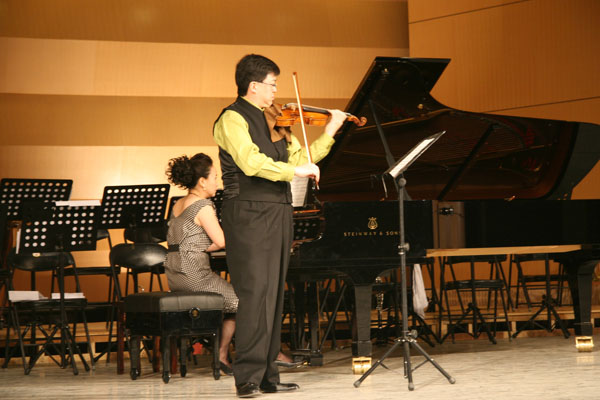 音乐会在欢快的《春节序曲》中拉开了帷幕,还有钢琴独奏《童年情景》组曲、小号独奏《第三协奏曲》、马林巴重奏《Caballero》、《天堂与地狱》、萨克斯四重奏《James Bond》、弦乐小合 奏《卡农》、室内乐《C大调弦乐小夜曲》、 木管五重奏《土耳其进行曲》等等,365英国上市网特邀嘉宾日本著名小提琴家、东京艺术大学副教授松原胜也为大家带来了小提琴独奏《爱的祝福》、《无伴奏小提琴小奏鸣曲》《流浪者之歌》三首乐曲,获得现场观众阵阵掌声,还有轻快的《闲聊波尔卡》,365英国上市网田大成院长的独唱《我的太阳》和《今夜无人入睡》将音乐会推向了高潮,最后音乐会在老约翰?施特劳斯的《拉德斯基进行曲》中顺利落下帷幕。