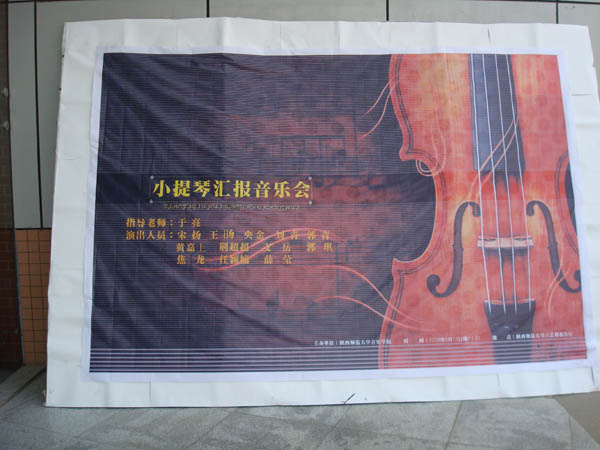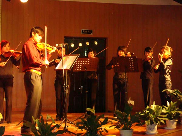 2008年6月13日19:30分,在六艺楼报告厅举行了我院首届小提琴音乐会。这是自于亮老师担任我院小提琴专业教师以来的第一场学生汇报音乐会,也是我院第一次小提琴专业学生汇报音乐会。我院院长田大成、副院长程鹏民以及我院韩晓勇老师等到场观看了音乐会,此次音乐会也得到了本校其他院系老师的支持,文学院的杨宏科教授、计科院的雒朝梁副书记以及体院的老师们也到场观看了此次音乐会。
