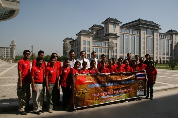 9月4日上午9时,泰国皇家吞武里大学师生一行人来我院参观访问,院长田大成、书记秦汉民、副院长张晓农、程鹏明、梁玉奇接待了客人并进行了座谈。 田大成院长首先对吞武里大学师生来访我院表示热烈欢迎,并介绍了我院的专业设置、师资等基本情况,吞武里大学领导也介绍了此次来访西安的目的和活动安排,以及吞武里大学的发展历史等,双方领导互赠礼礼物并合影留念。 座谈会后,吞武里大学的师生还观看了我院舞蹈专业的教学观摩课和防唐乐器展览。