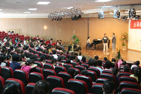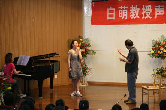 讲座主要是以示范课的形式进行,先后有陈丹、陈旭等6位同学得到白萌教授的指导,白萌教授用简单通俗、幽默风趣的语言讲解示范,不时得到现场阵阵掌声和欢笑声,无论是外国咏叹调、还是中国名歌白萌教授都能够深入浅出示范讲解。现场师生对白萌教授的讲座都认为很受启发,更是一次很好的交流和相互学习的机会,对我院声乐教学起到了很好的促进作用 。