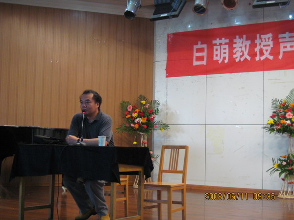 讲座主要是以示范课的形式进行,先后有陈丹、陈旭等6位同学得到白萌教授的指导,白萌教授用简单通俗、幽默风趣的语言讲解示范,不时得到现场阵阵掌声和欢笑声,无论是外国咏叹调、还是中国名歌白萌教授都能够深入浅出示范讲解。现场师生对白萌教授的讲座都认为很受启发,更是一次很好的交流和相互学习的机会,对我院声乐教学起到了很好的促进作用 。