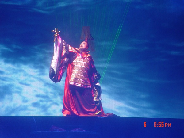 7月18日晚大型史诗歌舞剧《蓬莱仙境》在山东省蓬莱三仙山大剧院首演,这是山东省委宣传部开发山东蓬莱旅游资源而精心创作的一部大型歌舞剧,特邀我院副院长程鹏民教授在剧中担任主角扮演秦始皇,首场演出获得圆满成功,程鹏民教授的精彩表演受到山东省各级领导和海内外观众的赞赏和好评。