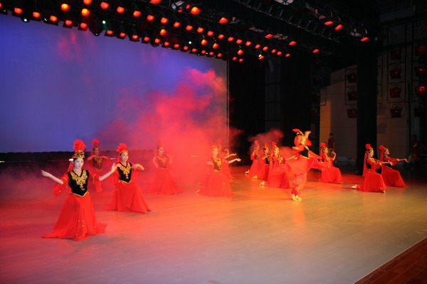 晚会在热情欢快的民族舞蹈《旋、旋、旋》中拉开了帷幕,双人舞《出走》《同窗》表现了莘莘学子求学的辛力路程,独舞《情逝》《香妃戎装像》《家、梅表姐》《青蛇》是根据电视剧或历史故事改编的舞蹈,同学们扎实的基本功、精彩的表演赢得了晚会现场阵阵掌声,一曲优美的傣族三人舞《邵多丽》之后,晚会在群舞《唐古拉风》欢快的旋律落下了帷幕。演出结束后,毕业生代表向舞蹈系辛勤耕耘的全体教师献上了鲜花,最后院领导与演出的毕业生合影留念。