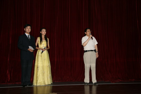 在晚会开始前田大成院长首先提议全体起立向在5.12汶川大地震中遇难的同胞默哀1分钟,并发表了讲话表达了对学院全体毕业生的良好祝愿。