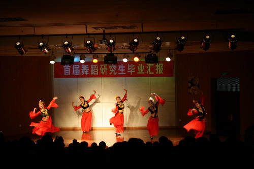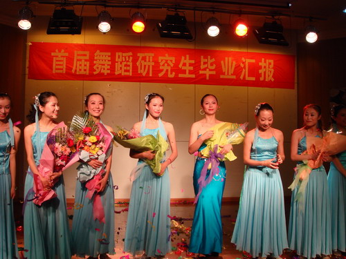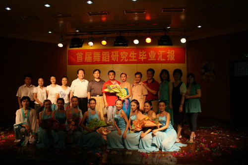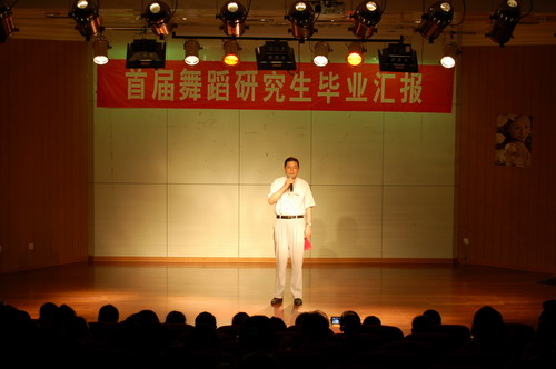 2007年6月26日下午16:00整,我院首届舞蹈硕士研究生毕业汇报演出在六艺楼报告厅举行。院长田大成教授、秦汉民书记、张晓农、程鹏民、孙航、吕逢民副院长以及我校有关部门领导光临演出现场,校领导打来电话祝贺并预祝演出取得圆满成功。