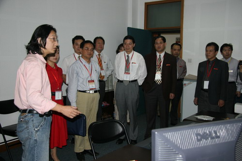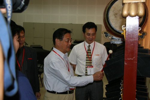 易佑民教授首先在535教室听取了我院青年教师欧阳文思讲授的《音乐名作欣赏》课程,随后在院领导的陪同下考察了我院各专业教室。在录音棚,易教授在听过王林老师对正在进行的录音工作的介绍后又就设备购置及操作等问题进行了详细地询问;汉唐乐器陈列室中展览的不同时代各少数民族乐器也使易教授惊赞不已,杜鹃老师与学生随后进行了鼓演奏表演。在琴房,易教授向正在练琴的04级音乐教育专业学生亲切询问了专业学习情况,鼓励学生认真刻苦地深练专业,全面学习,成为知识结构合理、专业技能过硬的高素质人才。