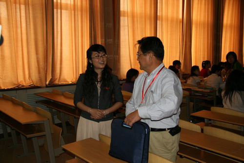 听课后易佑民教授与欧阳老师亲切交谈