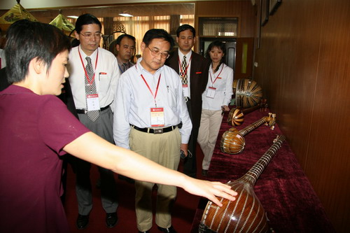 易教授在汉唐乐器展示室考察