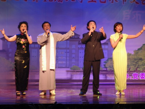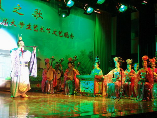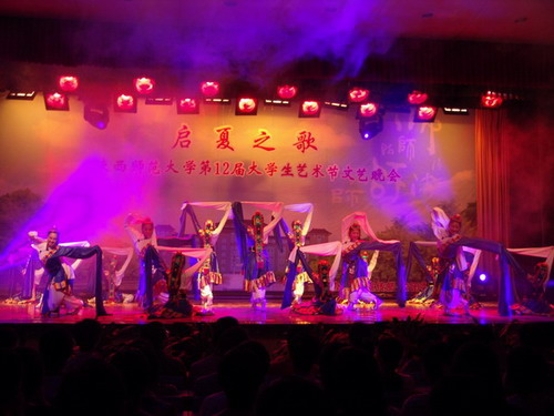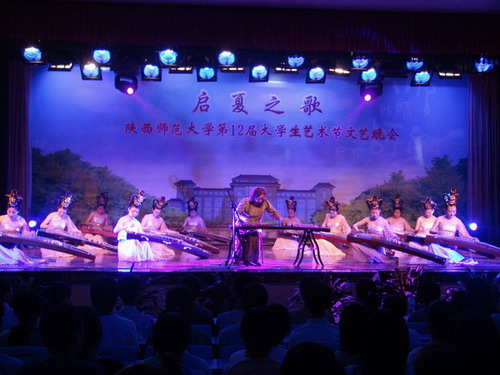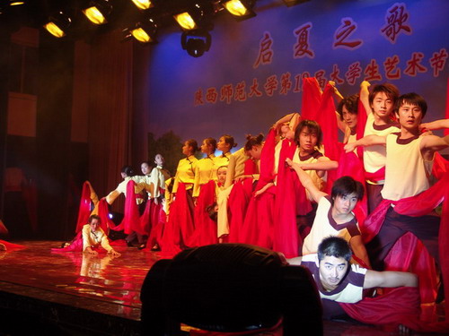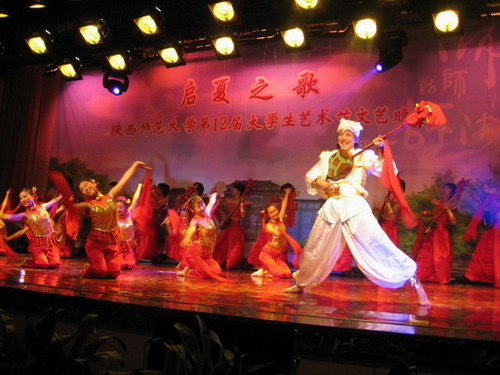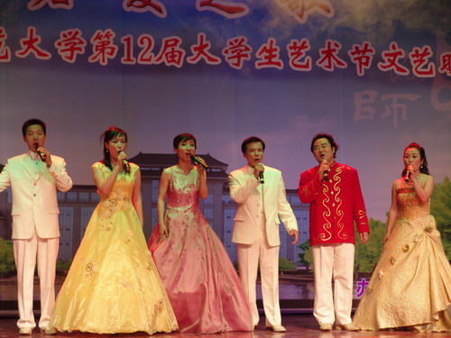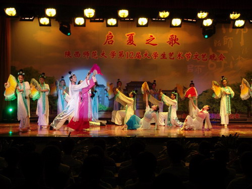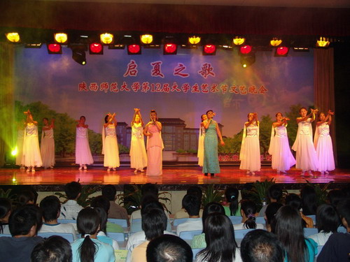 2006年5月17日晚,正规英国365网址第12届大学生艺术节《启夏之歌》文艺晚会在雁塔校区积学堂举行。预评估专家组成员、学校党政领导和700余名师生一同观看了演出。《启夏之歌》文艺晚会由党委宣传部及校团委主办,365英国上市网、校大学生艺术团等部门承办,我院师生承担了晚会的主要演出任务。晚会由“汉唐韵”、“启夏魂”、“黄土情”三部分组成。热烈欢快的舞蹈《天地秧歌》以热情奔放的舞姿拉开了晚会的帷幕。晚会始终贯穿着高雅的艺术风格,展现了丰富多彩的校园文化生活和奋发向上的师生精神风貌。《书苑情》、《渔舟唱晚》、《西部赞歌》等节目异彩纷呈,我院师生精湛的艺术表现不时博得专家和师生的阵阵掌声。
