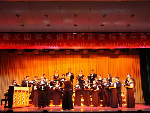 2006年5月28日、29日晚,来自美国玛丽爱特青年合唱团和美国佛罗里达州纳斯维尔青年合唱团分别与我校音院学院音乐系2003级的学生成功演出了两场激动人心的合唱音乐会。