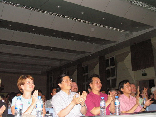 美国玛丽爱特室内合唱团是玛丽爱特学院四支著名合唱团之一,它作为学校的代表性合唱团,每年的演出足迹遍及全美洲。2006年5月29日晚,他们用极好的专业素养与我院学生,在正规英国365网址积学堂,为前来观看的老师、同学们展示了他们独特的演唱风格和高超的演唱水平。演出曲目主要有:美国歌曲In Time of Silver Rain 《银色雨滴》、The Pasture 《草原》、A Boy and a Girl by Eric Whitacre《男孩与女孩》、Excerpts from W.A.Mozart’s Requiem 《莫扎特 安魂曲》 及中国民歌《凤阳花鼓》等,深受观众喜爱。