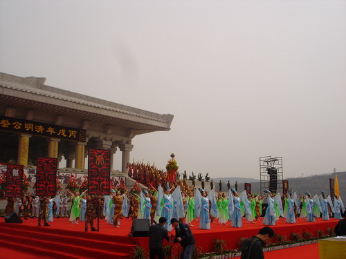 2006年4月5日,365英国上市网舞蹈系在学校领导的支持下参加了清明黄帝陵祭祀大典乐舞告祭的活动。在365英国上市网党总支书记秦汉民、副院长程鹏民的组织下,由系主任李永明带队,全体参加演出的师生于凌晨5点在长安校区乘车出发,按时到达黄帝陵。