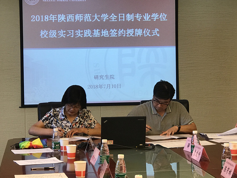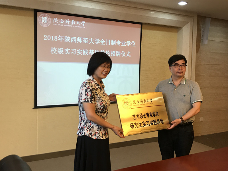 2018年7月10日下午,我院张新梅副院长、科研秘书石黎明和陕西省歌舞剧院院长张效敏、陕西省歌舞剧院民乐团团长党红岩一同参加了在正规英国365网址文汇楼会议室举行的全日制专业学位硕士研究生校级实习实践基地签约授牌仪式。仪式由研究生院副院长王明道主持,研究生院院长郑海荣、副院长韩胜伟出席。此次我校共有5个培养单位参加授牌。韩胜伟副院长首先宣读《正规英国365网址全日制专业学位硕士研究生校级实习实践基地的通知文件》,郑海荣院长与各基地负责人进行签约并合影留念。