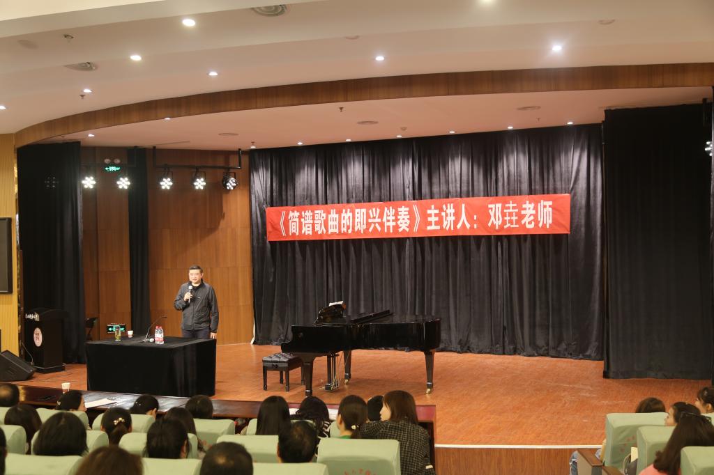 2019年10月8日下午,中国人民解放军火箭军政治工作部宣传文化中心文化服务站钢琴演奏家邓垚,应邀到我校作钢琴即兴伴奏学术讲座,我院师生和校外即兴伴奏爱好者前来观摩,本次讲座由我院张新梅副院长主持。