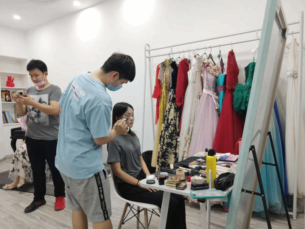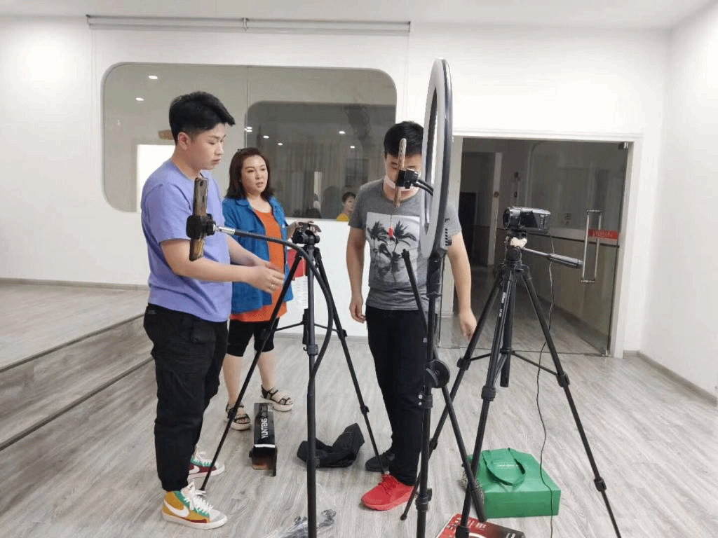 音乐会马上开始,大家都进入了紧张的准备工作中,老师们也开始了线上设备的调试工作以及带领学生进行发声练习!(本次音乐会的整体造型由天天向上全力打造)