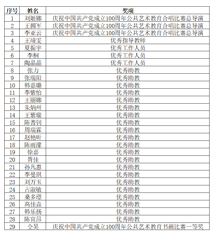 365英国上市网在本次活动中获得特殊贡献奖,我院教师刘姬娜、王拥军、李亚云等3人在比赛中获得优秀总导演奖,辅导员王靖雯获得优秀指导教师奖,夏振宇等3位同学获得优秀工作人员称号,张力等21位同学获得优秀助教称号。另悉,学生仝昊获得“庆祝中国共产党成立100周年公共艺术教育书画比赛一等奖”。