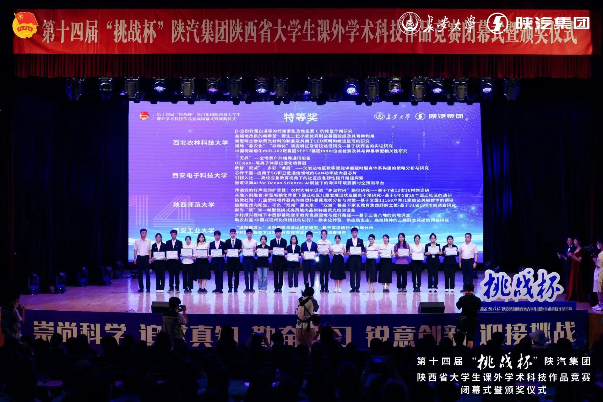5月20日下午,由团省委、省委教育工委、省科技厅、省科协、省社会科学院、省学联、西咸新区管委会共同主办的第十四届“挑战杯”陕汽集团陕西省大学生课外学术科技作品竞赛闭幕式暨颁奖仪式在长安大学举行。